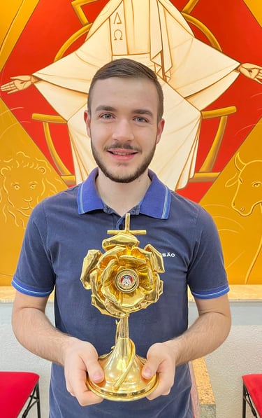 Entre os que presenciaram a visita das relíquias, Hugo Henrique Varol Dias, seminarista do 2º ano da etapa do Discipulado, compartilhou sua experiência: “Eu conheci o Carlo naquele momento de fervor em sua beatificação. A história dele tocou o meu coração. É um santo muito próximo de nós. E, olhando para toda a história dele, vejo que é possível ser santo, está ao nosso alcance.” Hugo descreveu a emoção que sentiu ao ver as relíquias, uma experiência que reafirmou sua vocação e sua fé. A vida de Carlo Acutis não só é inspiradora, mas imapctante para a juventude católica.